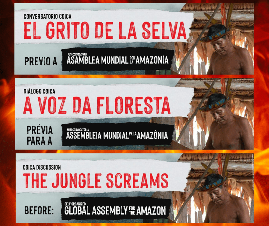 Lo puede seguir en vivo en la pagina de facebook de la COICA y de la Asamblea Mundial por la Amazonia:https://www.facebook.com/CoordinadoraOrganizacionesIndigenasCuencaAmazonica/https://www.facebook.com/asambleamazonica/ EL GRITO DE LA SELVA Conversatorio COICA Previo a la Autoconvocatoria a la Primera Asamblea Mundial por la Amazonía 17 julio / 10:00 (Ecuador, Colombia, Perú), 11:00 (Bolivia y Venezuela), 12:00 (Brasil):¿Por qué losSigue leyendo «El Grito de la Selva / A Voz da Floresta / The Jungle Screams»