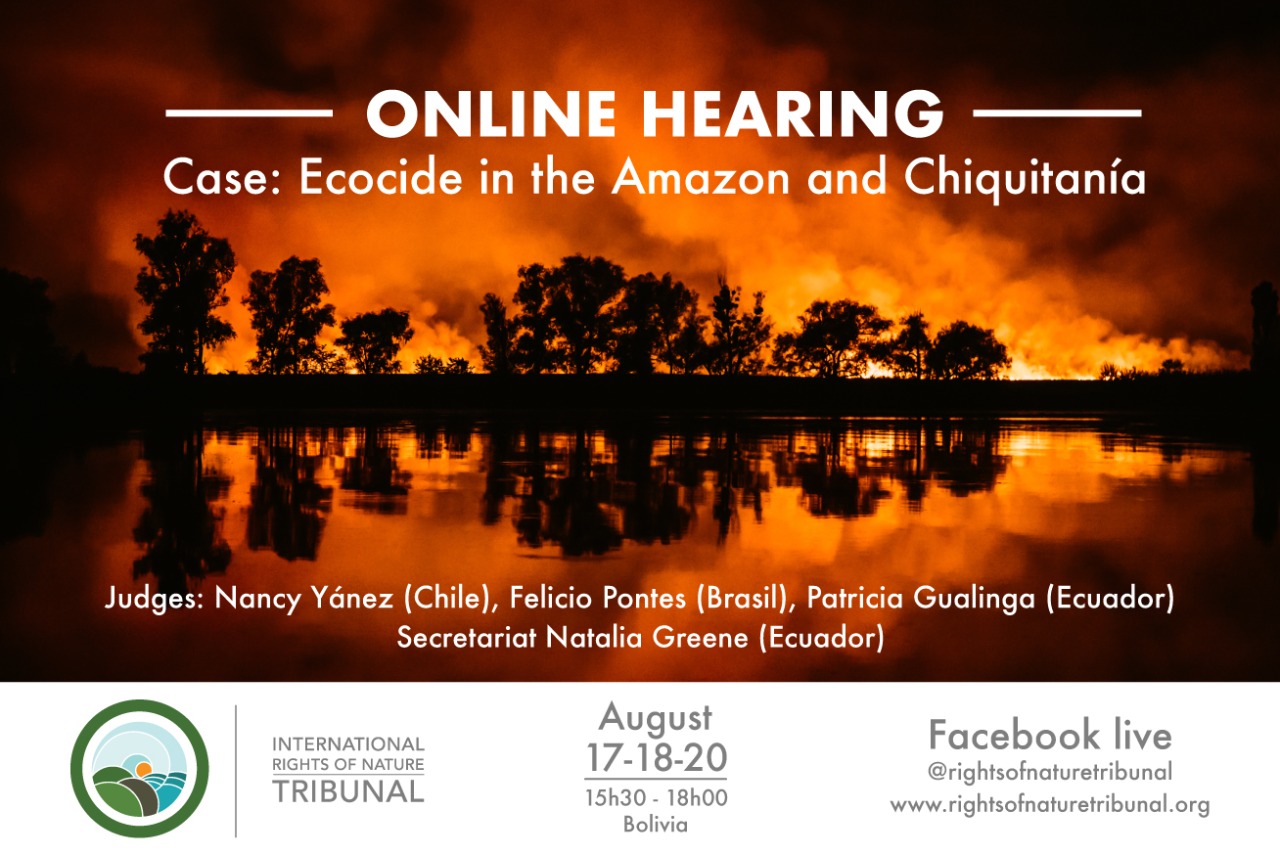 The International Rights of Nature Tribunal (IRNT), during the reading of the verdict for the Case «Chiquitanía, Chaco and Amazonia vs. Plurinational State of Bolivia,» declared that the 2019 fires were an “ecocide caused by State policy and agribusiness,” and demanded the repeal of the designated «incendiary regulations» to prevent these events from ever beingSigue leyendo «The International Rights of Nature Tribunal resolves that the 2019 fires were an Ecocide caused by State policy and agribusiness»