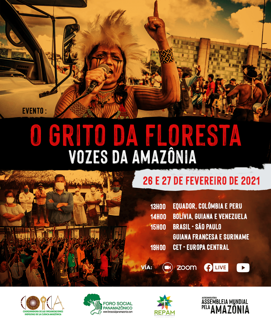 The Amazon’s peoples and organizations, threatened by an increasing set of pandemics, make a call to everyone who feels the necessity of working together to protect our territories from the crisis upon us, to participate in “The Jungle Screams: Voices of the Amazon” a virtual gathering in which we will analyze and build proposals toSigue leyendo «Save the date: This February, 26th and 27th join to the Jungle’s scream»