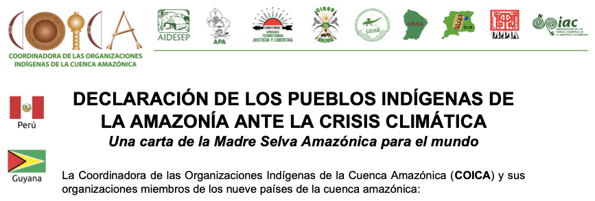 DECLARACIÓN DE LOS PUEBLOS INDÍGENAS DE LA AMAZONÍA ANTE LA CRISIS CLIMÁTICA. UNA CARTA DE LA MADRE SELVA AMAZÓNICA PARA EL MUNDO