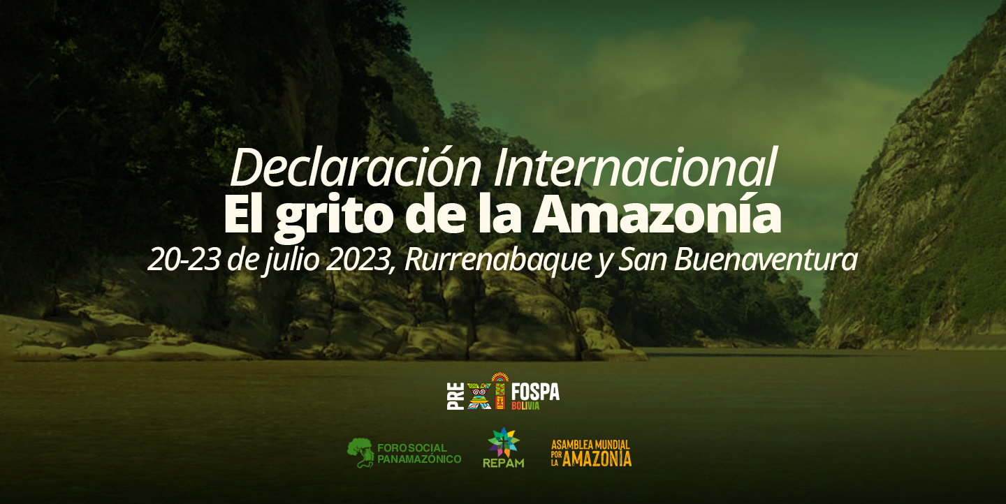 Pre-FOSPA BOLIVIA, 20 al 23 de julio Las organizaciones abajo firmantes, reunidas en el marco del Pre-Foro Social Panamazónico de Bolivia, acordamos movilizarnos a nivel nacional e internacional por las siguientes propuestas, e instamos a los Jefes de Estado de Bolivia, Brasil, Colombia, Ecuador, Guyana, Perú, Surinam y Venezuela a adoptar decisiones urgentes para suSigue leyendo «Declaración Internacional: El grito de la Amazonía»