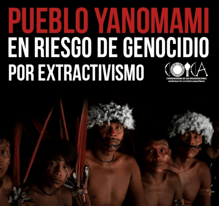COICA. 10 de mayo 2021 Alerta Yanomami, el extractivismo mata. Desde el 10 de mayo, el pueblo indígena Yanomami, enfrenta una escalada de violencia y terror pues ha sido víctima de intimidación y ataques armados por parte de mineros ilegales, en Roraima, comunidad Palimiu de la Amazonia brasileña. En rueda de prensa, los líderes delSigue leyendo «Pueblo Yanomani en riesgo de Genocidio por extractivismo»